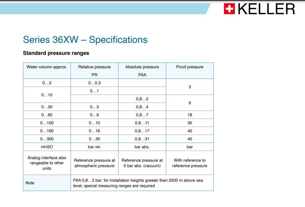 KELLER 液位探頭 36XW系(xì)列 精度最高(gāo)的壓阻式液(yè)位